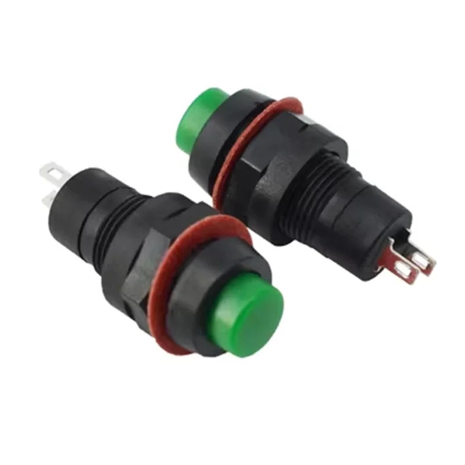 Bouton poussoir momentané ds-213 vert de 10 mm avec 2 broches, idéal pour les projets électroniques. Tension de fonctionnement de 12V, facile à intégrer.