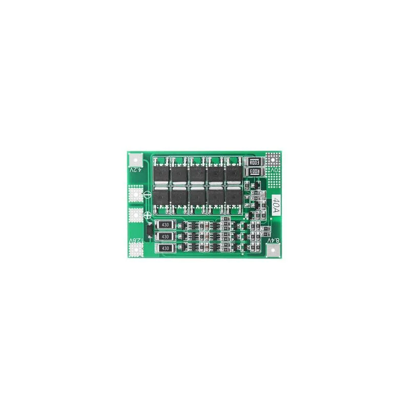 Carte bms 3s 40a 12.6V pour protection de batteries lithium, avec un courant maximal de 40A. Conçue pour une utilisation dans des projets électroniques variés.