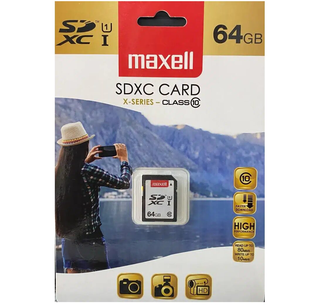 Carte mémoire Micro SD 64Go Class 10 Maxell, rapide et fiable, idéale pour smartphones, caméras, drones et Raspberry Pi.