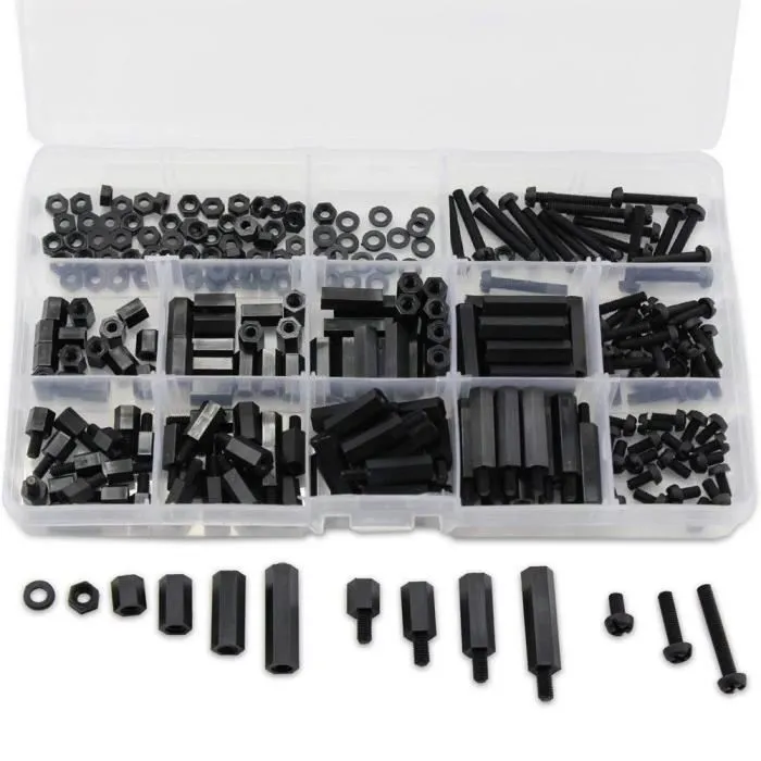Kit entretoise noir de 400 pièces, parfait pour le montage de projets électroniques. Comprend des entretoises de différentes tailles pour une utilisation polyvalente.