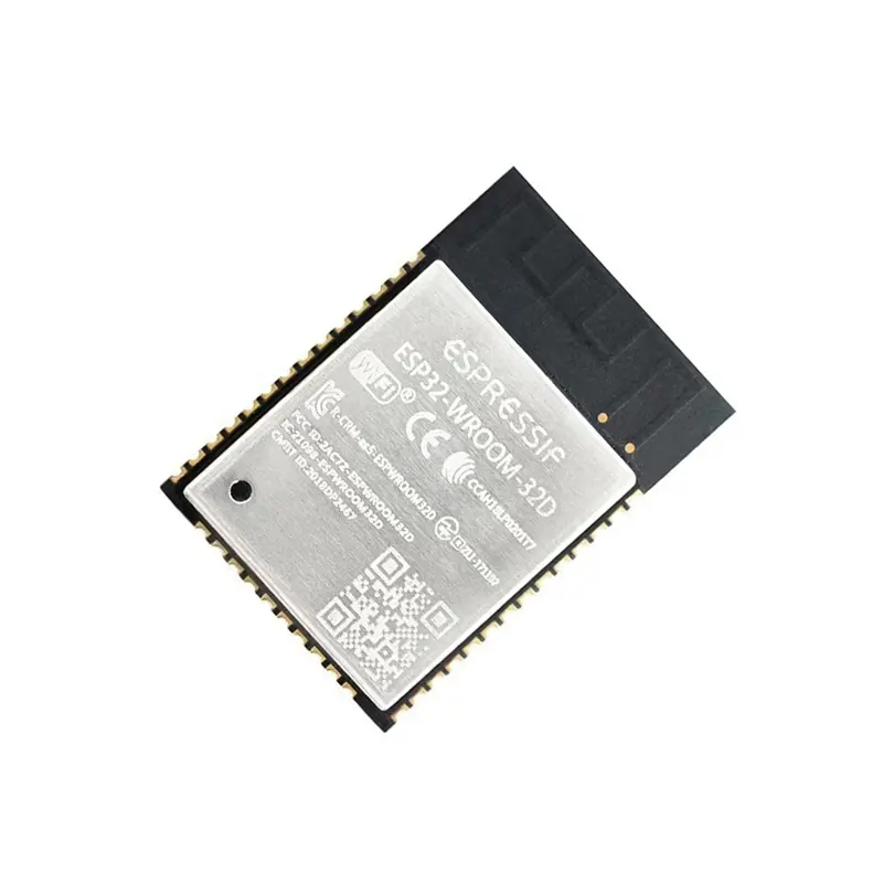 Module esp32-wroom-32d 8M 64Mbit avec connectivité Wi-Fi et Bluetooth, idéal pour vos projets IoT. Tension de fonctionnement de 3.3V, dimensions compactes.