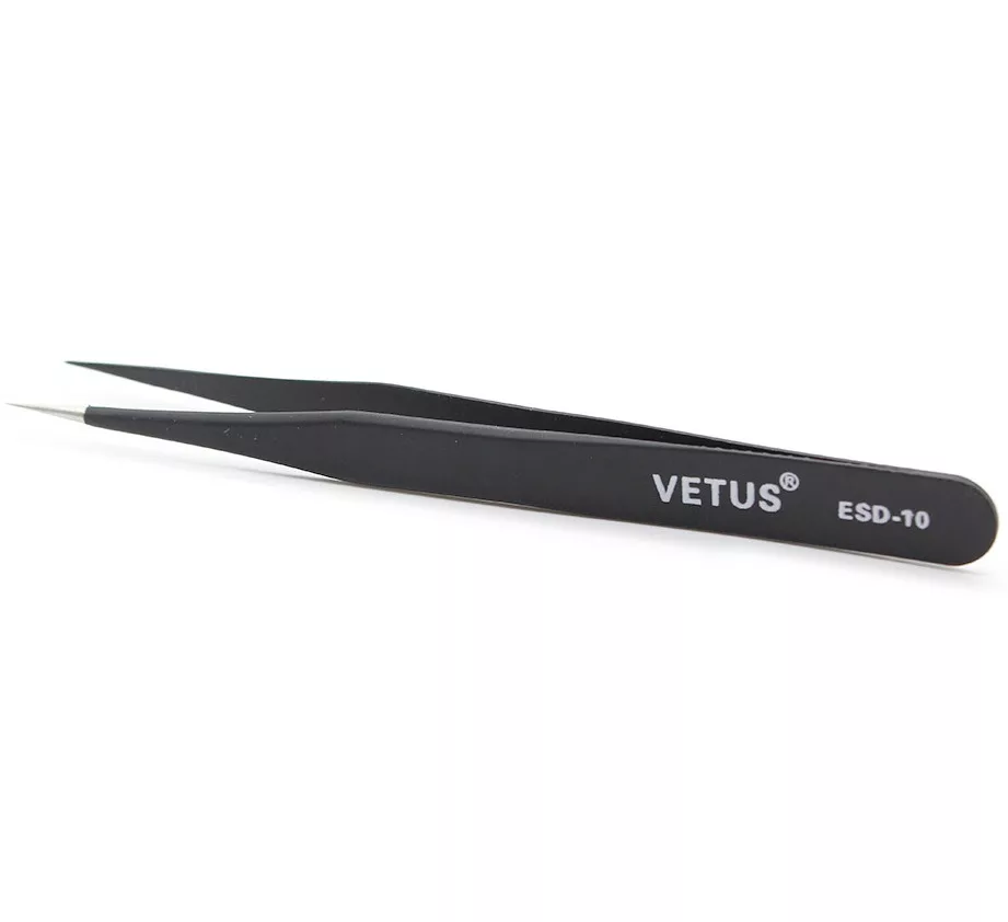 Pince Brucelles VETUS TS-10 ESD-10, conçue pour la manipulation précise de composants électroniques. Résistante à l’électricité statique, idéale pour les projets techniques.