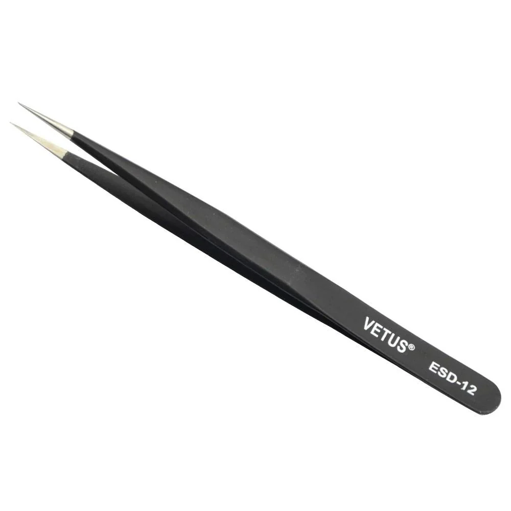 Pince Brucelles VETUS TS-12 ESD-12, idéale pour la manipulation de composants électroniques sensibles. Longueur de 12 cm, finition antistatique pour éviter les décharges.