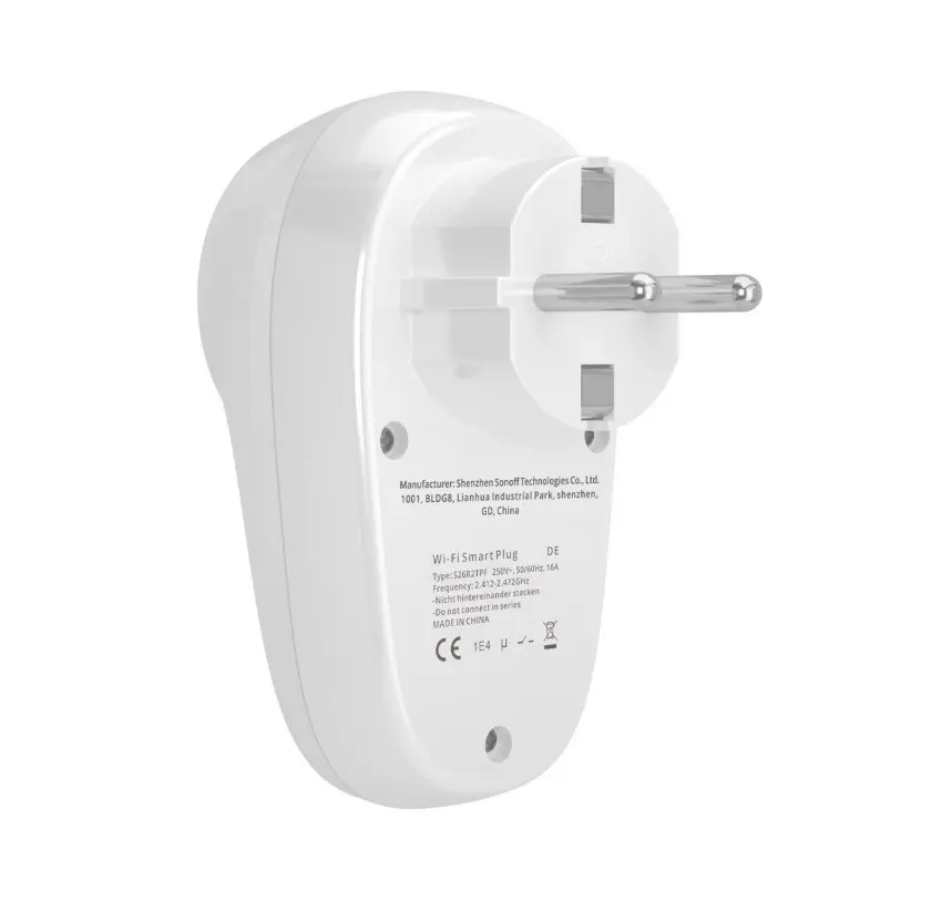 Prise intelligente Sonoff S26 R2 16A avec connectivité Wi-Fi, compatible avec Alexa et Google Home. Idéale pour automatiser vos appareils électriques.