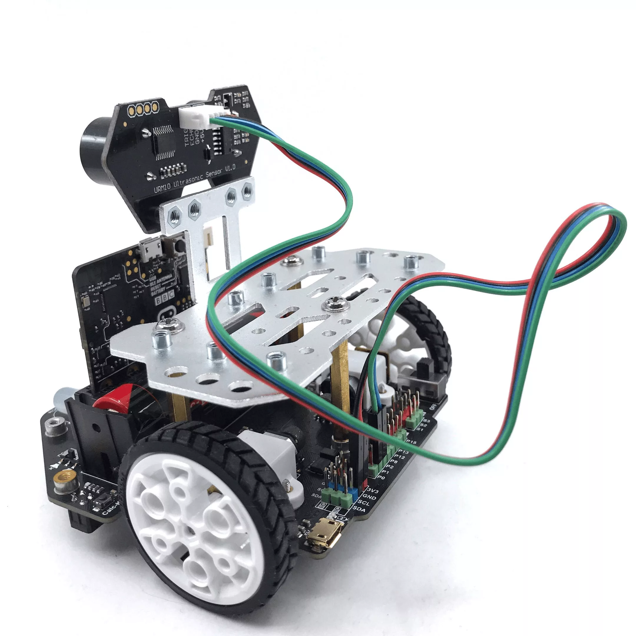 Le Maqueen Plus intègre de nombreux modules et capteurs : suivi de ligne, détection d’obstacles, LEDs RGB, buzzer, ports pour servomoteurs et connecteurs I2C pour extensions supplémentaires. Il permet de réaliser une variété de projets interactifs, allant de la course autonome à la programmation de mouvements complexes et au contrôle à distance.