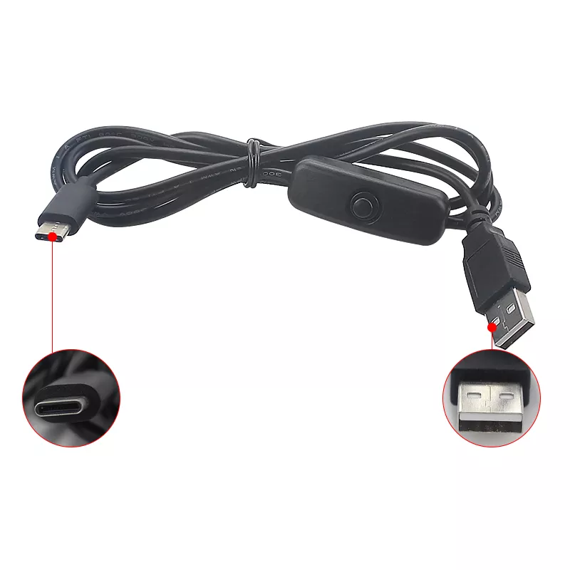 Cable USB vers Type C 5V 3A avec interrupteur ON/OFF Pi4