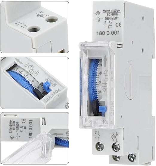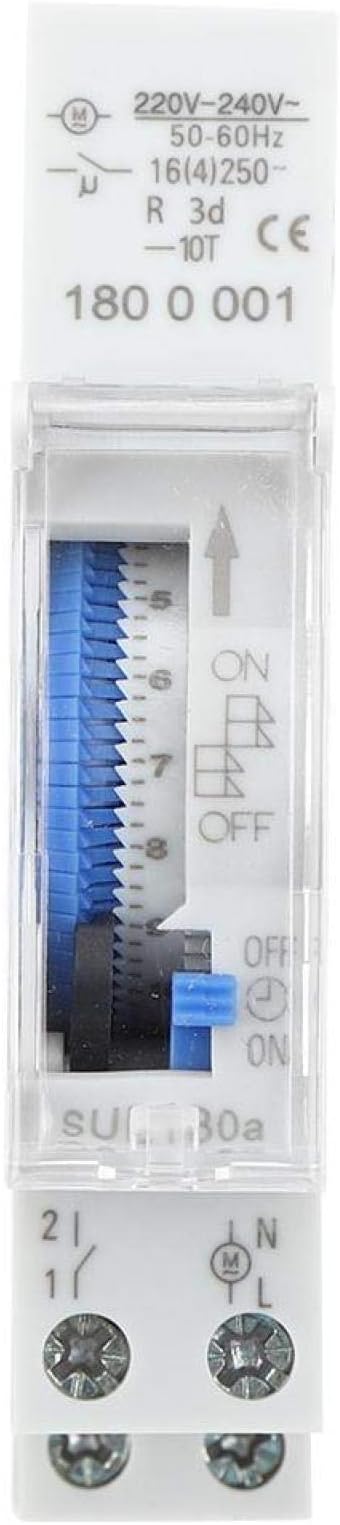 Interrupteur Horaire mécanique SUL180A 15 min à 24H 16A 230V Minuterie mécanique 24 heures, SUL180a Relais temporisateur programmable de 15 minutes à 24 heures, contrôleur de circuit électrique avec support de rail Din standard, AC 220V / 230V 16A Spécification : Type d’élément : minuterie mécanique Modèle : SUL180a Capacité de contact : AC230V 16A Plage de temps : 24 heures Résistance de contact : ≤50 mΩ Résistance d’isolement : ≥100 MΩ Tension de la bobine : 220 VAC Durée de vie : 10 ^ 5 fois électrique, 10 ^ 7 fois mécanique Température ambiante : -10 ~ + 50 ℃ Durée de stockage : 70 heures Informations sur la batterie : pile bouton 100 mAh Unité de réglage minimale : 15 minutes Temps de prise : 15 minutes/fois 96 foisSi vous êtes intéressé par les dispositifs de synchronisation, vous pourriez vouloir en savoir plus sur les interrupteurs horaires, qui sont essentiels pour automatiser les opérations électriques sur une base quotidienne. En parlant de minuterie, le modèle SUL180A est un excellent exemple de minuterie mécanique, une solution fiable pour contrôler vos systèmes électriques. De plus, si la compatibilité avec les systèmes électriques vous interpelle, découvrez comment un contact électrique joue un rôle crucial dans la gestion de l’électricité domestique. Enfin, pour ceux qui s’intéressent aux composants internes, la structure et le fonctionnement d’un relais électromécanique pourraient également avoir votre attention.
