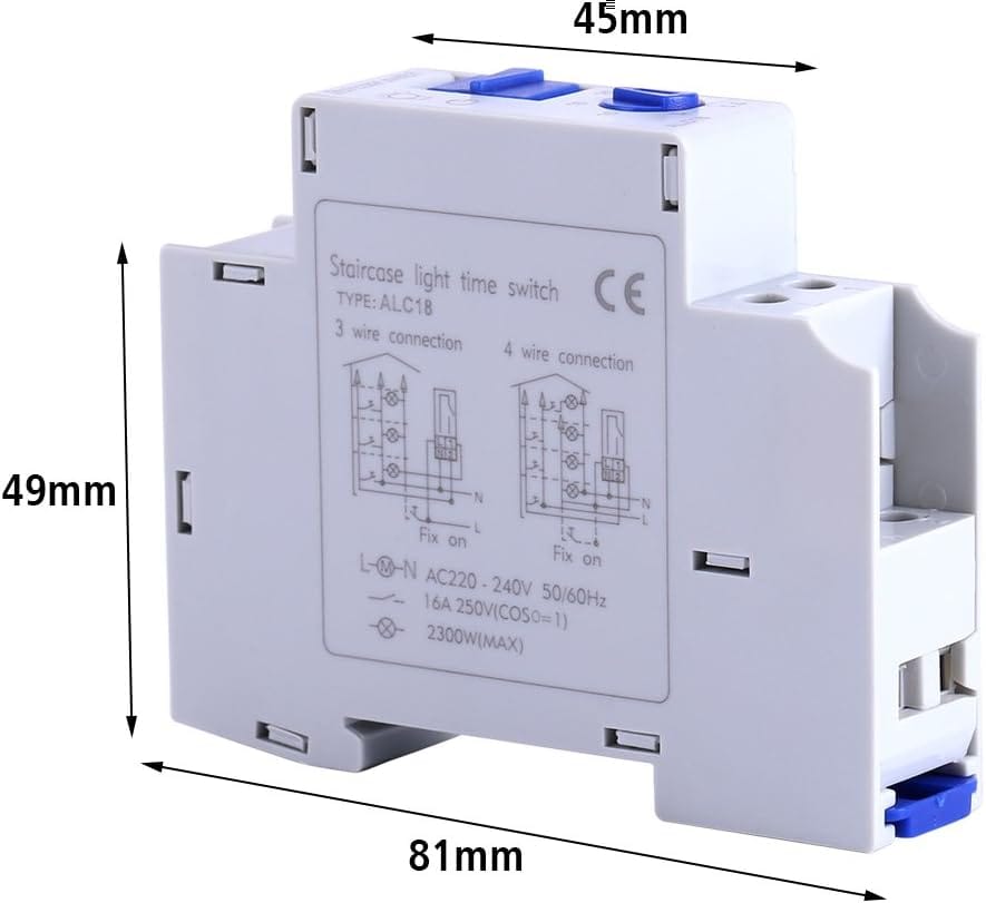 DEWIN ALC18 Interrupteur de Minuterie d’éclairage d’escalier Mécanique Interrupteur de Minuterie de Relais Électronique AC 220-240V 16A pour Éclairage de Couloir, Escalier d’escalier de Maison