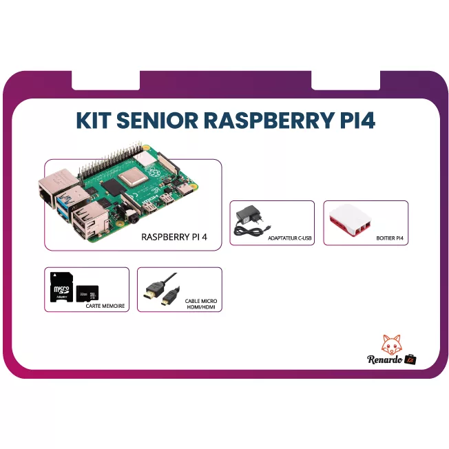 Découvrez le Kit senior Raspberry Pi4 Renardo, parfait pour les passionnés de programmation. Avec la carte Raspberry Pi 4 et accessoires inclus, explorez les possibilités infinies de la programmation. Ne manquez pas cette occasion d’apprendre et de vous équiper! #RaspberryPi4 #KitSenior #Programmation