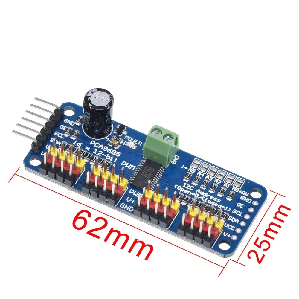 Découvrez le Pilote de servomoteurs PWM 12 Bits – 16 canaux PCA9685, idéal pour contrôler jusqu’à 16 servomoteurs avec précision. Facile à utiliser, fiable, garantit des mouvements fluides pour vos projets électroniques. Optez pour la qualité professionnelle dès maintenant!